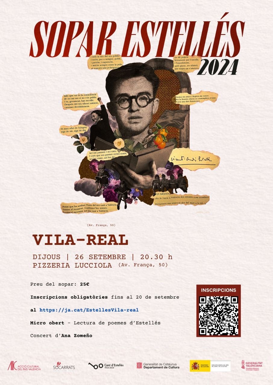 Dijous també hi haurà un homenatge a Vila-real (Plana Baixa) al poeta del poble a través de l’acte organitzat per l’Associació Cultural Socarrats i que compta també amb l’impuls d’Acció Cultural. Aquest esdeveniment inclourà un concert d’Ana Zomeño.