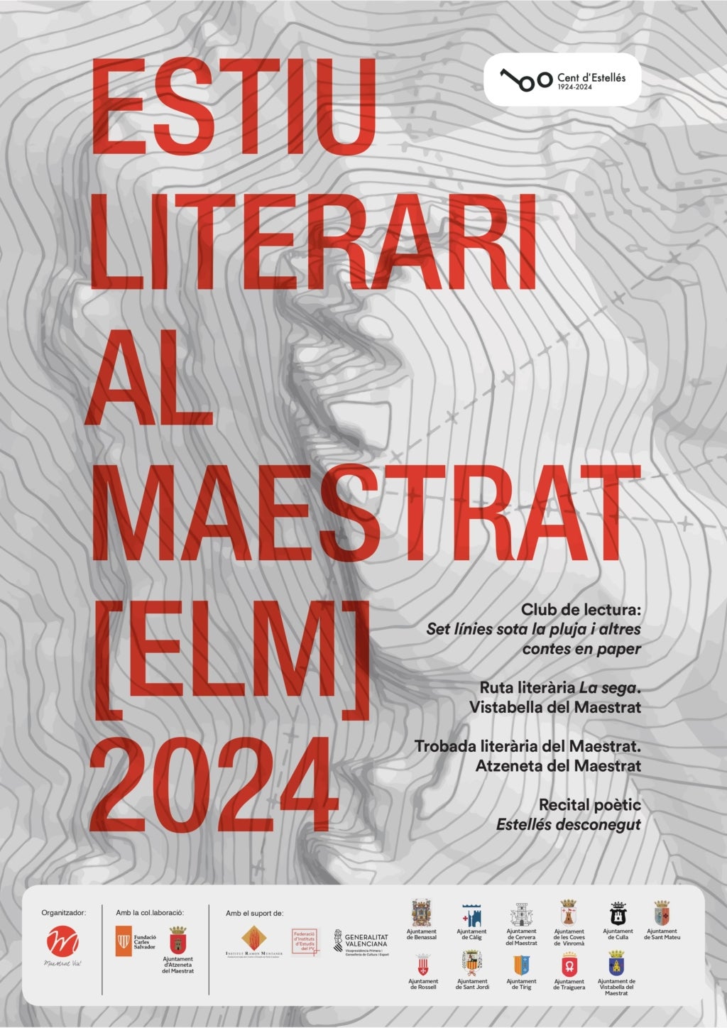Enguany acabem l’ELM dissabte 31 d’agost al pati de la Casa Betània d’Atzeneta del Maestrat, amb el recital Estellés desconegut, que des de Maestrat Viu hem volgut fer amb El Pont Cooperativa de Lletres, l’entitat dels escriptors i escriptores de les comarques de Castelló, que amb motiu del centenari del naixement del poeta han publicat un volum commemoratiu. Hi participaran Vicent Jaume Almela, Rosa Miró, Àngels Orad, Vicent Sanz, Maties Segura i Isabel Serrano. Es tracta d’una variació de format que introduïm enguany i que podria incorporar-se al programa d’edicions posteriors en funció de les necessitats organitzatives.