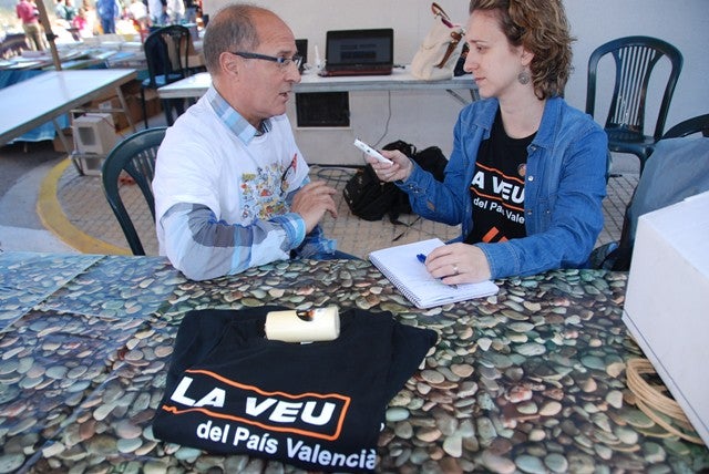 I és que el nostre ciberdiari, laveupv.com, després de la bona acollida en les darreres trobades vam estar a Guardamar per donar suport a la gran tasca que fan les escoles per potenciar la nostra llengua. Comptàrem amb un estant per donar a conèixer el nostre projecte, el de tots. Expliquem el nostre lema ‘Un diari digital possible amb el micromecenatge’.