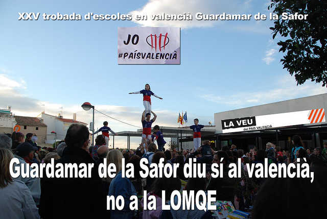 El president d’Escola Valenciana, present a Guardamar, va voler fer referència a la recentment aprovada LOMQE. Vicent Moreno lamenta que amb aquesta llei, “si finalment tira endavant, tenim una llumeneta d’esperança que no siga així, ens retrau als anys 60 o 70, tira endarrera tota la qualitat d’ensenyament que s’ha fet durant molt anys. Per això diem NO a la LOMQE”.