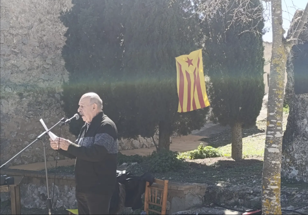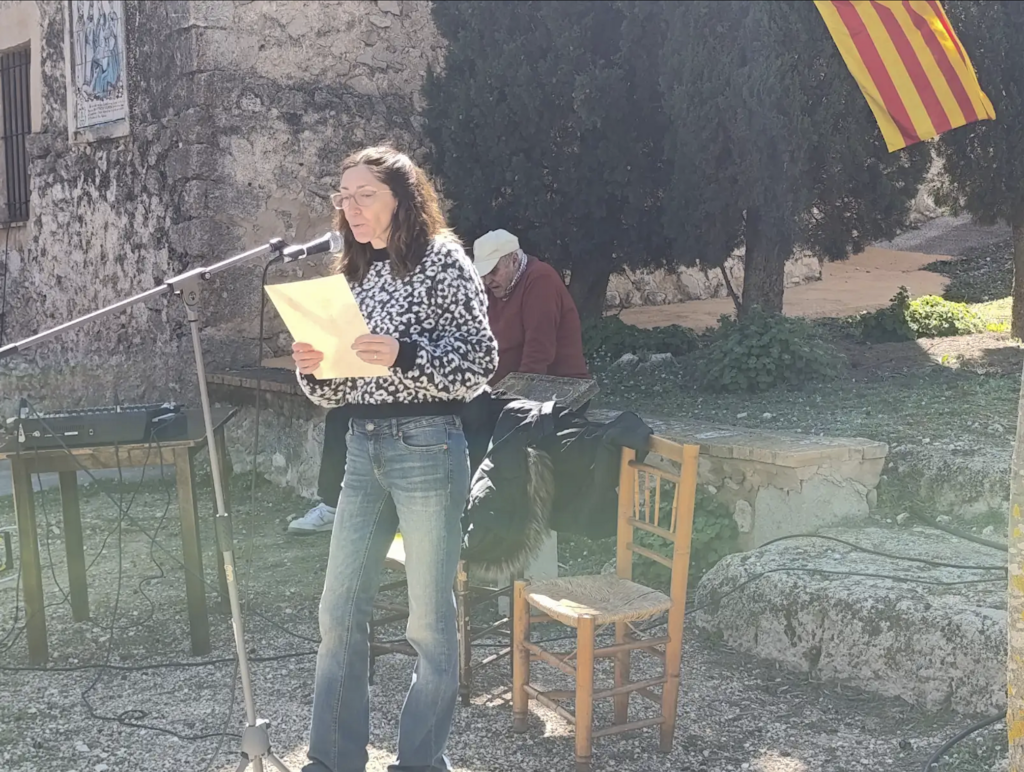 Rosanna Martínez, presidenta d’Escola Valenciana i veïna del Camp de Mirra, ho va expressar amb precisió: “la nostra història, la nostra llengua, els nostres símbols i els nostres mites estaven proscrits (i encara ho estan en bona part). Per sort, hi ha hagut gent excepcional que ha anat enderrocant pedra a pedra murs que pareixien insondables”. Seguidament, seguiren les intervencions de Romà Francés, Mauro Conca, que va llegir el manifest del Correllengua, i Ruth Martínez, que recità “La fi de Jaume I”, poema de Josep Carner. L’acte finalitzà amb les notes de la Muixeranga.