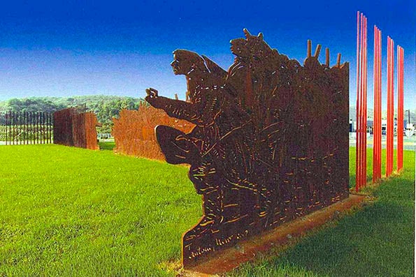 ’25 d’abril de 1707′ és obra d’Antoni Miró i recorda el 300 aniversari de la derrota a Almansa de les tropes de l’arxiduc Carles d’Àustria i la posterior entrada al territori valencià de Felip V amb l’abolició dels furs i la pèrdua de l’autogovern dels valencians.