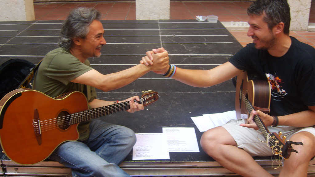 Durant els últims dies, els dos cantautors han estat assajant a la Casa de la Cultura d’Alzira, “compartint les nostres músiques. És molt curiós, som d’una generació diferent, pràcticament no ens coneixíem, però al desenfundar les guitarres connectàrem de seguida. Joan Amèric és un referent en la Cançó d’autor”, explica Andreu Valor.