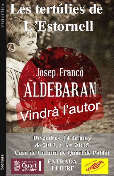 L’escriptor de Sueca Josep Franco participarà el pròxim divendres, 14 de juny, en la tertúlia literària ‘L’Estornell’, en la qual es parlarà sobre la seua novel·la Aldebaran. L’acte se celebrarà a la Casa de Cultura de Quart de Poblet.