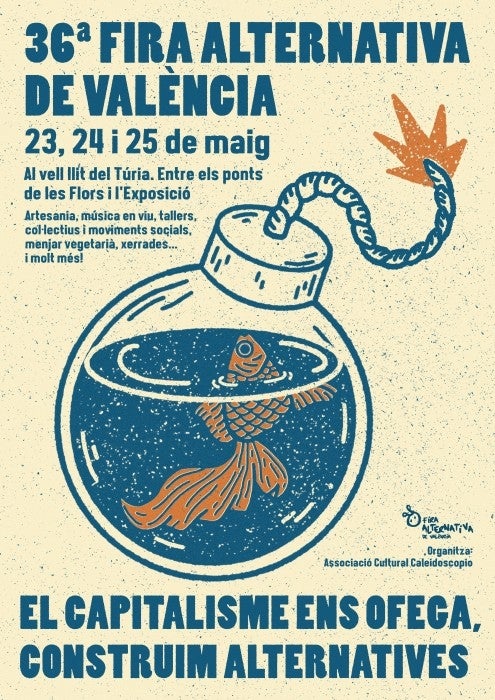 La Fira Alternativa de València arriba a la 36a edició els propers dies 23, 24 i 25 de maig al Jardí del Túria de València amb la participació més de dues-centes paradetes d’artesania, d’alimentació i de col·lectius socials i amb una programació farcida d’activitats, que inclou xerrades, concerts, tallers i teatre per a totes les edats.