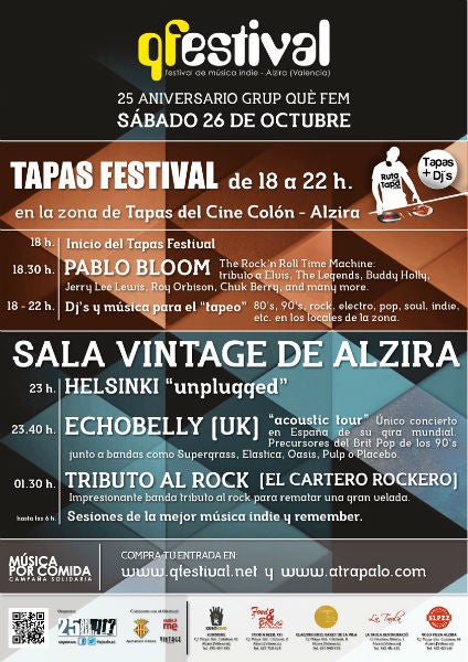 Es tracta d’una combinació de música i gastronomia. L’activitat es desenvolupa en dos espais, a la vesprada (de 18 a 22 hores) en la zona de tapes del Cinema Colón d’Alzira, amb l’actuació de dj’s (pop, Indie, remember, etc) i del showman Pablo Bloom, que oferirà un peculiar tribut a Elvis, The Legends, Roy Orbison, Jerry Lee Lewis, Queen, etc. Aquesta activitat està oberta a tots els públics.