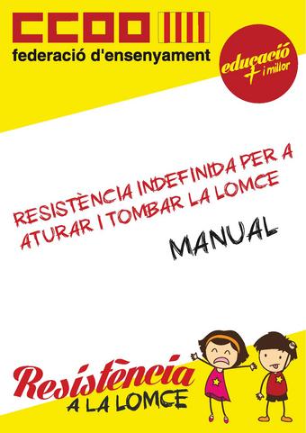 Una vegada aprovada la LOMQE amb la majoria absoluta i absolutista del PP, s’imposa una segona fase de la lluita per més i millor educació per a tots i per a totes: la Resistència a la LOMQE.