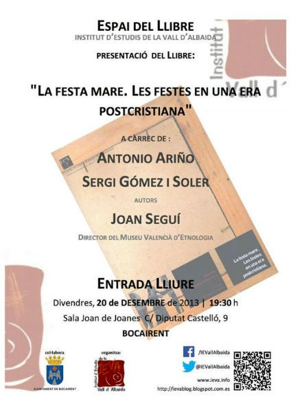 L’acte de presentació es farà divendres 20 de desembre, a les 19.30 hores, a la sala Joan de Joanes de Bocairent, a càrrec dels autors i de Joan Seguí, director del Museu d’Etnologia Valenciana.