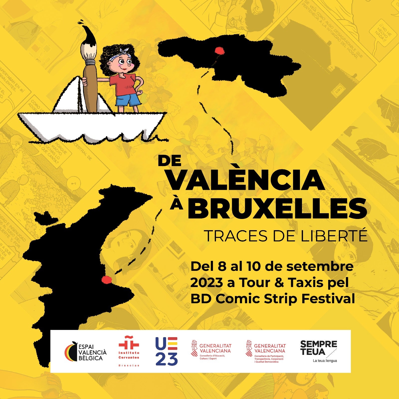 Del 8 al 10 de setembre, Brussel·les acull una nova edició d’un dels esdeveniments més importants del món dedicat al novè art: el BD Comic Strip Festival, que en la passada edició va reunir més de 50.000 visitants. Durant tot el cap de setmana, artistes, editorials i centres culturals es donaran cita en un mateix espai per a mostrar el seu enorme potencial creatiu. En el pavelló internacional, els assistents podran gaudir del talent valencià gràcies a l’exposició De València à Bruxelles: Traces de liberté.