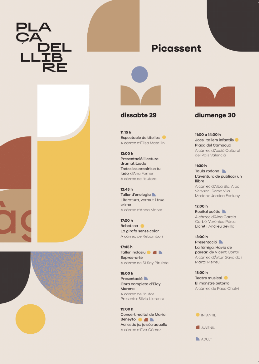 A partir d’aquest divendres, 28 de novembre, i fins diumenge, la Plaça del Llibre presenta una proposta cultural diversa per a tots els públics, amb presentacions de llibres, trobades amb autors i autores, tallers infantils, taules redones i diferents espectacles, entre altres activitats que faran de Picassent un espai de cultura viva i participativa.