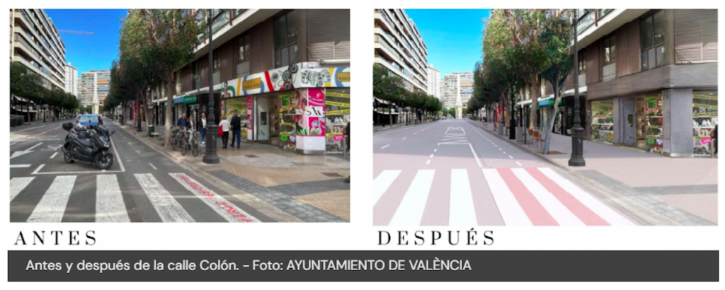 A poc a poc, avancen les obres de reforma de les avingudes de Giorgeta i Pérez Galdós a València. En algun tram ja podem veure les voreres acabades, ara ja més amples del que eren. L’avinguda de Trànsits és un vial de no aplega a 30 metres d’amplada. Fins ara, en alguns trams, hi havia voreres d’1,8 metres aproximadament. És a dir, un 12% de l’espai estava destinat al vianant; la resta, al trànsit rodat. Aquesta situació s’ha tolerat anys i panys —jo no n’he conegut altra—, de manera que qualsevol millora és a fi de bé.