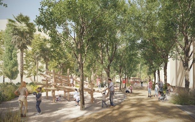 El que més hi destaca, des del punt de vista gràfic, és la vegetació. Fins i tot s’han dibuixat amb minuciositat les arrels dels arbres —Arrels era el lema del projecte guanyador del concurs d’idees. En les següents perspectives del projecte també salta a la vista la profusa vegetació: