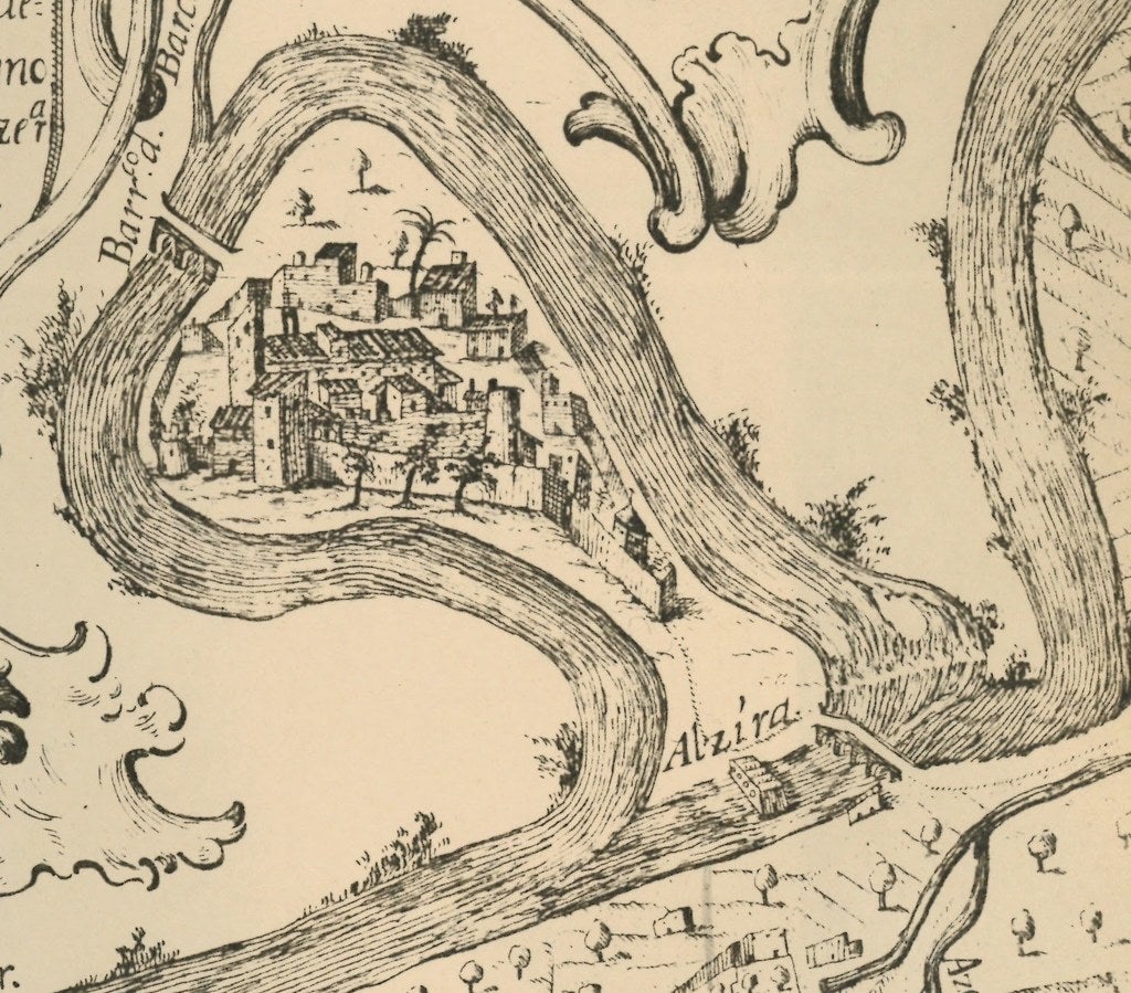 I «entre Xúquer i la confluència dels seus dos rius / era on havíem desitjat deturar-nos». Allà estava la Bāb az-Zakhārif (la Porta dels Ornaments), que evoca Ibn Khafāja al poema núm. 156 del seu Dīwān, metre ṭawīl i rima en -ifī. Un espai que devia ser cèlebre lloc de trànsit i trobada en època del poeta, format per un clos amb porta interior i porta exterior que comunicava amb el pont, més endavant el pont de Sant Bernat (demolit en 1966), que conduïa cap a l’Alquenència (al-Kanīsa). Ibn Khafāja descriu la porta així: