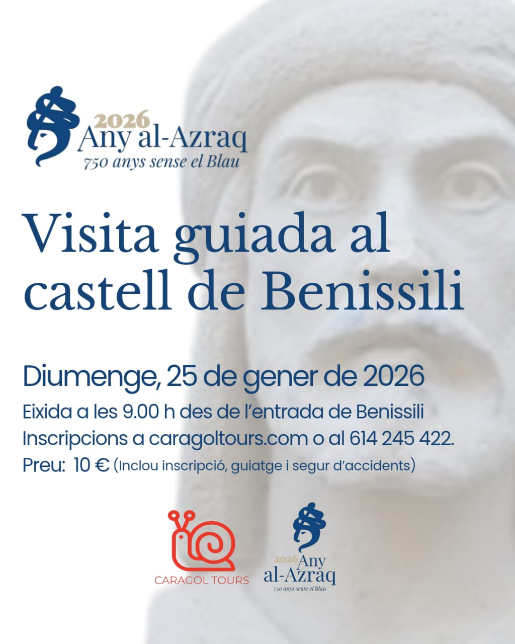 La Coordinadora ha informat, igualment, que la visita del diumenge 18 de gener ja està completa i que s’ha obert una nova inscripció per al diumenge 25 de gener. Per formalitzar la inscripció a les rutes i consultar el calendari, la informació pràctica i les indicacions, la Coordinadora remet al formulari habilitat per Caragol Tours. Una manera d’acompanyar en el seguici reial el regnat d’al-Azraq al segle XXI.