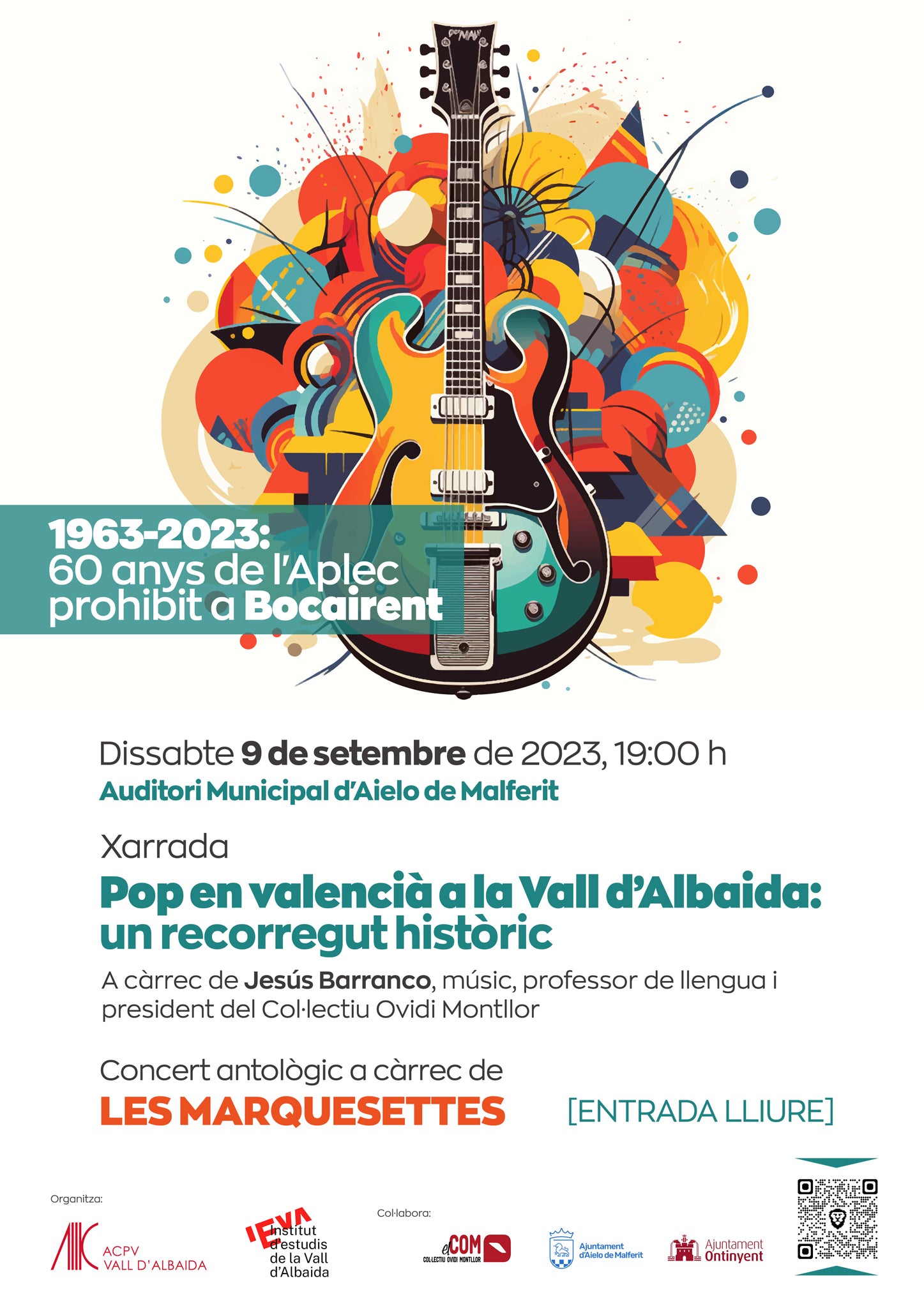 L’IEVA reprèn també la commemoració dels 60 anys de l’aplec que es va prohibir a Bocairent. Ho farà dissabte, 9 de setembre, a Aielo de Malferit. La programació de l’aplec del 1963 incloïa l’actuació de Raimon, la veu que més va popularitzar la cançó en català al País Valencià. La prohibició de l’aplec va impedir el concert, tot i que el cantant va arribar a entrar a Bocairent.