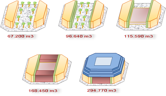 Si hi afegim que l’altura màxima prevista per als edificis era de 16 metres, equivalent a planta baixa més quatre, mentre que finalment s’han alçat unes quantes plantes més; que la profunditat edificable era de 20 metres i no de 28 m (o més), com actualment; que l’amplària dels carrers es va reduir en alguns casos; i que —la pitjor tergiversació del pla— es va edificar en planta baixa l’espai interior de les illes, estarem en situació de comprendre què ha quedat de la «idea profunda» del pla Cerdà. En les condicions originals previstes per Cerdà, la proporció entre la superfície lliure i l’edificada en cada illa era de dos a un. Ací teniu una seqüència gràfica d’aquestes transformacions: