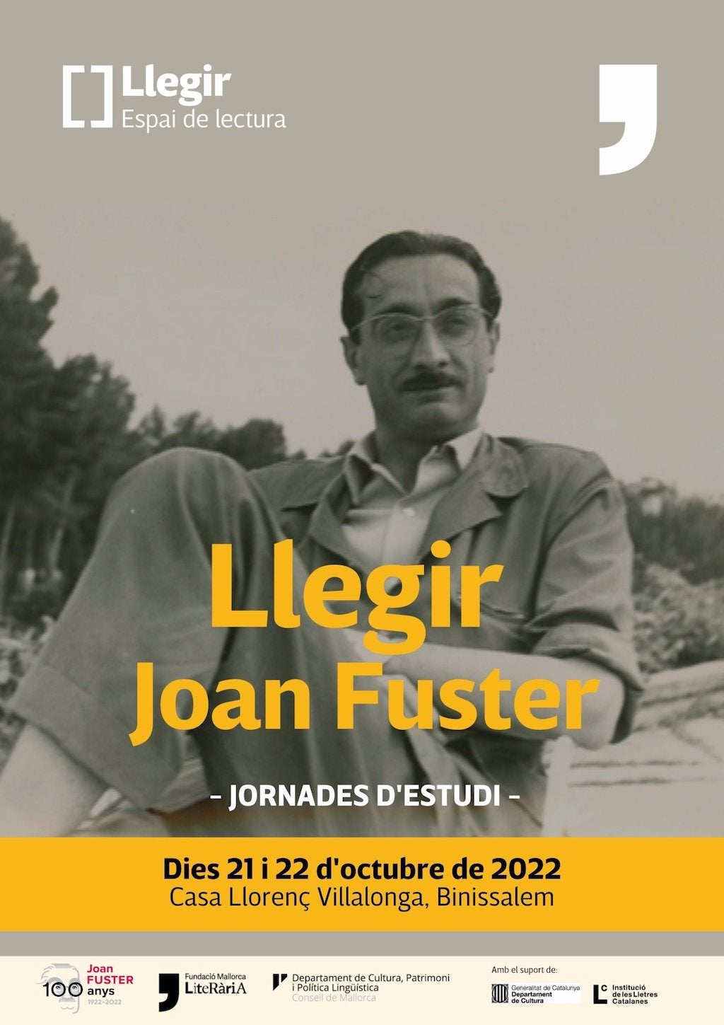 El departament de Cultura, Patrimoni i Política Lingüística ha detallat aquest divendres que, en el marc de l’Any Fuster, tindrà lloc «Llegir Joan Fuster» entre els dies 21 i 22 d’octubre a la Casa Llorenç Villalonga de Binissalem.