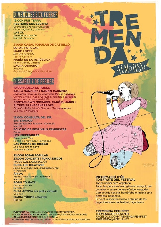 El Tremenda Fem Fest és un festival feminista i autogestionat, que es realitzarà el 6 i 7 de Febrer en Castelló de la Plana. Va en la línia dels festivals com: el Ladyfest, Femmé Soroll, Furor Uterí o MEFSST.