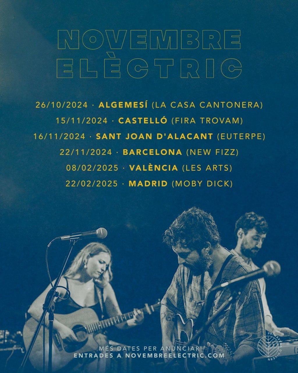 La formació també presenta per a l’ocasió nova gira, amb la qual passarà per Algemesí (Ribera Alta) el 26 d’octubre, per Castelló de la Plana el 15 de novembre, per Alacant el 16 de novembre, per Barcelona el 22 de novembre, per València 8 de febrer i per Madrid el 22 de febrer. Aquestes dues últimes dates seran les presentacions oficials del disc, amb la formació al complet de Novembre Elèctric.