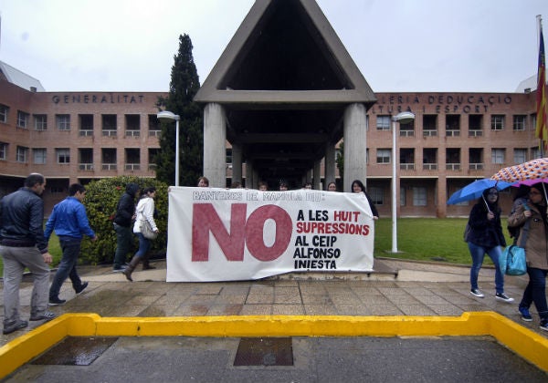 El divendres 26 d’abril, més d’un centenar de persones, entre pares, alumnes i mestres, van fer una tancada a les instal·lacions del centre públic. La comunitat educativa del CEIP Alfonso Iniesta no descarta repetir aquesta acció setmanalment fins que la Conselleria restituisca els mestres tutors i especialistes d’atenció a necessitats educatives especials que ha suprimit.