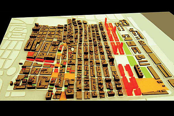 Alhora, aposta per una reconversió de l’antiga zona ferroviària en una àrea d’habitatges, comerços i oficines. Així, el solar i parc a desnivells que són hui una barrera psicològica es transformen en una nova continuïtat del barri cap al mar.