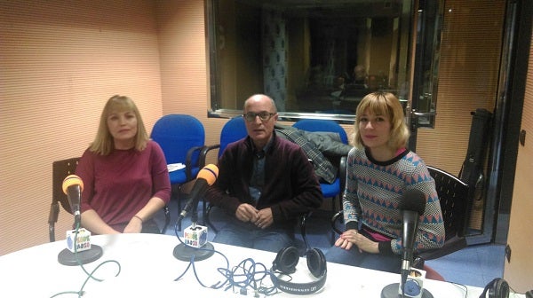 D’esquerra a dreta, el cap de continguts i la directora de PequeRadio amb Vicent Moreno i Alba Veryser, tècnica d’Escola Valenciana.