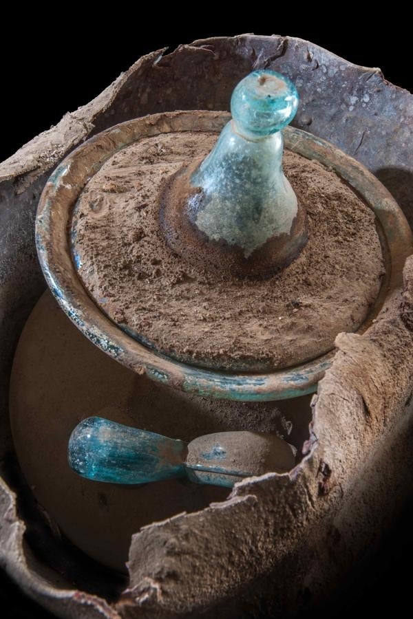 Un descobriment molt peculiar que no es va aturar ací, perquè, al panteó familiar, dins d’una urna de vidre, hi va aparéixer un autèntic tresor arqueològic: un recipient ple d’un líquid vermellós. Les primeres anàlisis van revelar la presència de tanins, la qual cosa feia pensar que es tractava de vi en estat líquid conservat durant més de 2.000 anys. Havien descobert el vi més antic del món?