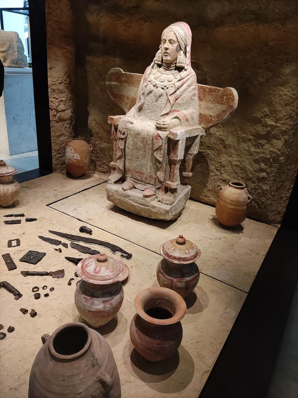 Reuneix armes i atuells exclusivament ibèrics per quadruplicat –cas únic–, amb un sol objecte associat al treball de filar. La tomba està encapçalada per l’estàtua d’una dona asseguda en un tron, que conté les cendres de la difunta. La imatge és honrada amb quatre armadures constituïdes per falcata (l’espasa corba ibèrica), escut i llança. A més, rep altres tantes àmfores petites i quatre atuells repintats a joc amb l’escultura, entre altres ofrenes.
