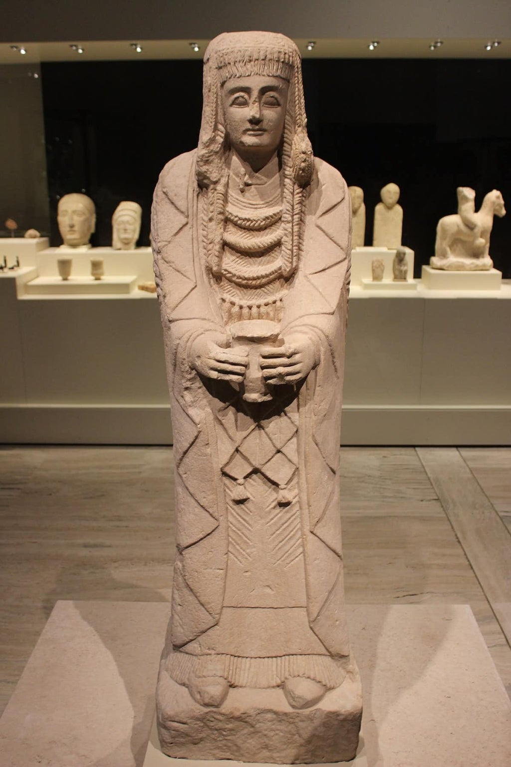 En la sèrie femenina que l’acompanya es reconeixen grups d’edat: les figures dretes, amb un vas caliciforme i els cabells trenats, al·ludeixen a un segment juvenil diferent del de les dones amb mitra sobre el cap, més madures, i del de les sedents amb les mans sobre els genolls, probablement matrones.