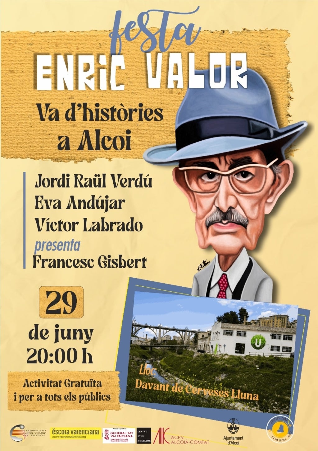 Des de fa uns quants anys, sentim parlar de les Festes Enric Valor, actes en què es narren històries orals i, alhora, es ret homenatge a la figura d’Enric Valor. Alcoi acull una Festa Enric Valor dissabte 29 de juny, a les 20 h. Serà a Cerveses Lluna (Ca Na Lloba, Alcoi), un espai idíl·lic a la vora del riu Riquer. En parlem amb Francesc Gisbert, organitzador, des de la Coordinadora pel valencià, juntament amb el Casal Ovidi Montllor d’Alcoi.