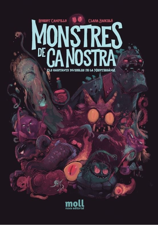 La Quarantamaula del País Valencià, el Gegant de l’illot des Vedrà, la Maria Enganxa de la tradició mallorquina, el follet Fameliar de les Pitiüses, les Bruixes Eriçones de Ciutadella, els mòpies o l’universal Home del Sac són només alguns dels Monstres de ca nostra. Els habitants invisibles de la Mediterrània, que publica Nova Editorial Moll, amb text de Clara Barceló i il·lustracions de Robert Campillo.