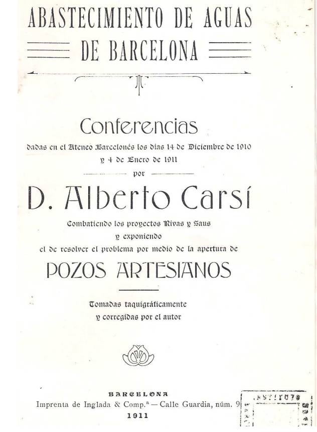 Com a enginyer, Carsí participa de ple en el debat sobre el subministrament d’aigües a Barcelona. La polèmica té dues vessants que de fet estan íntimament relacionades. La primera té a veure amb la qualitat de l’aigua, la composició de les aigües subterrànies o la captació del riu Llobregat. La segona, el monopoli exercit per una empresa privada, la Societat General d’Aigües de Barcelona (SGAB), que al parer d’Alberto, es lucra “indecentment” amb un bé de primera necessitat.