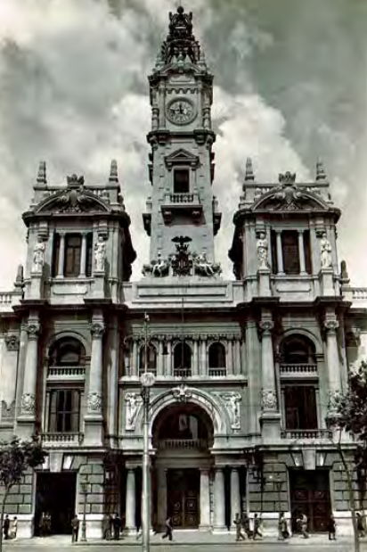 En la ciutat, el rellotge públic es va convertir en símbol de la vida civil. Durant alguns segles, en convivència amb la vida religiosa. Aviat serà un dels distintius de la dignitat i solvència d’un edifici —la casa consistorial, l’estació de tren, la seu central d’un banc, el govern, la borsa, una farmàcia… Mentrestant, quin lloc millor per instal·lar-lo que el campanar de l’església? Les campanes ja donaven les hores des de l’edifici més alt de la ciutat. A València, el primer rellotge mecànic (més o menys mecànic, s’entén) data del segle XIV. En algun moment va funcionar a la Casa de la Ciutat, que ocupava els jardinets del costat del Palau de la Generalitat, però el campanar de la Seu era l’emplaçament idoni. Més tard, com en moltes altres ciutats —molt més tard, en el cas de València—, el centre urbà es va emancipar del religiós. En el cas de València, es va desplaçar cap al sud, aprofitant el gran eixample que va deixar l’enderroc del convent de sant Francesc. A la vora d’aquest gran espai, en l’antiga casa de l’Ensenyança, es va instal·lar l’Ajuntament. Entre 1904 i 1910, els arquitectes Carlos Carbonell i Francisco Mora van redactar el projecte per a l’ala est d’aquest antic casalot, encara que la seua execució es va prolongar durant les dues dècades posteriors. La seua façana, de 88 metres de longitud, va iniciar la configuració actual de la plaça.