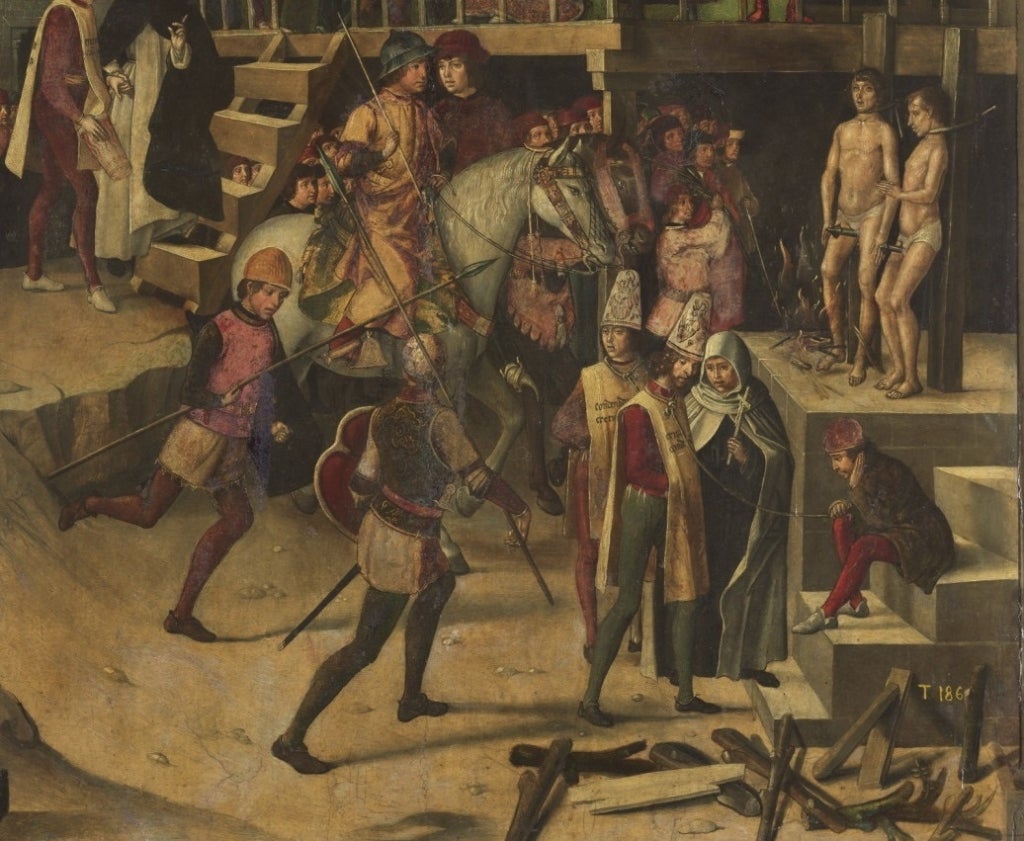 El tribunal de la Inquisició va ser implantat al Regne de València -igual que a la resta de la Corona d’Aragó- el 1481 per Ferran II el Catòlic, que buscava així controlar un jutjat religiós que fins al moment era jurisdicció exclusiva del Papa i que ja va patir una antiga coneguda de la sèrie: Margarida Borràs. Malgrat que el judaisme era encara legal -l’expulsió o conversió forçosa no arribaria fins al 1492, el nou tribunal se centraria principalment a la persecució dels “falsos conversos”, o siga aquells jueus que s’havien convertit formalment al catolicisme però continuaven mantenint pràctiques religioses jueves, siga per convenciment religiós o simple tradició cultural. Al Regne de València la comunitat conversa era especialment nombrosa després d’anys de persecucions legals -les va patir un vell personatge nostre: Jafudà Alatzar– i sobretot a partir del violent assalt i destrucció del call de València el 1391 -trist episodi que involucraria un altre conegut de la sèrie, el Pare Jofré-, a partir del qual, tots els jueus de la ciutat o bé emigrarien a Sagunt o Xàtiva, o bé es convertirien.