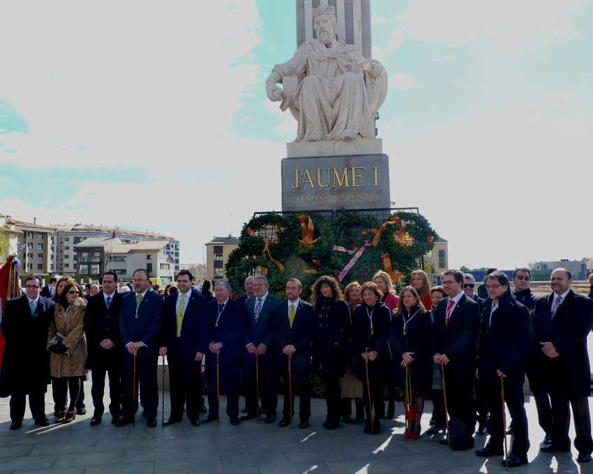Tot seguit, van ser els col·lectius participants els que van retre homenatge al monarca dipositant una corona de llorer als peus de la seua efígie. Abans d’acabar amb la interpretació de l’Himne de Vila-real per part de la banda de la Unió Musical La Lira, Manuel Carceller va llegir un fragment de Seidia, un poema èpic sobre el temps de la conquesta, des de Morella a Borriana, escrit per Joaquim Garcia Girona, escriptor de Benassal, que va ser publicat en 1920 i que està considerat un clàssic de les lletres valencianes del segle XX.