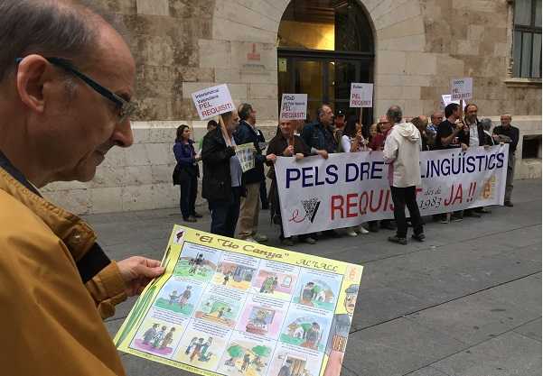 En la sisena concentració ‘Pels nostres #DretsLingüístics’, l’entitat cívica –que treballa per la normalització de la llengua al País Valencià– ha fet valdre la tasca del canceller, els notaris, els secretaris i els escrivans, que redactaven i expedien tots els documents oficials i que eren capaços de produir la informació en tres llengües: català, aragonés i llatí.