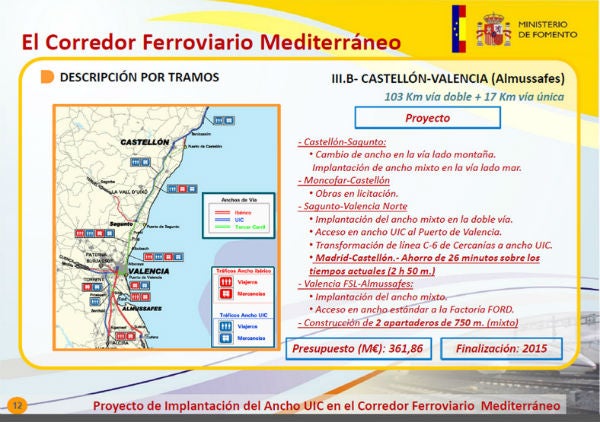 L’Administrador d’Infraestructures Ferroviàries (Adif) ha paralitzat l’adjudicació de les obres de seguretat del tram del Corredor Mediterrani entre Moncofa i Castelló (20 quilòmetres) per a executar aquesta mateixa actuació en un tram més ampli Almussafes-València-Castelló (89 quilòmetres).