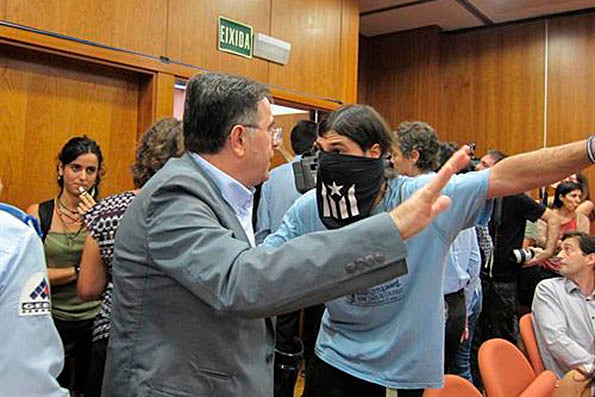 Mentre els estudiants increpaven al conferenciant i als organitzadors, i la seguretat privada intentava desallotjar-los de la sala, un altre grup d’universitaris ha entrat per força al saló d’actes de la Fundació Universitat Empresa Adeit, on s’havia traslladat per motius de seguretat la celebració de l’acte, previst inicialment a la Facultat d’Economia.