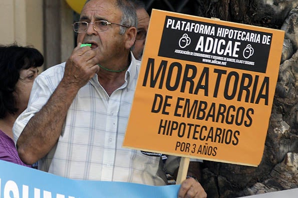 Els manifestants portaven més cartells que resaven lemes de les seues protestes com a ‘Moratòria d’embargaments hipotecaris per tres anys’ o ‘Contra el frau de les preferents’.