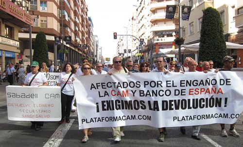 Ha reiterat que més del 60% dels afectats per aquests productes, sol ser una persona major o jubilada, i ha assegurat que als perjudicats no se’ls va informar en cap moment de la situació real de l’entitat bancària. Els manifestants han reclamat, una vegada més, que se’ls retorne ʹen efectiuʹ els diners invertits en els ʹproductes tòxicsʹ, sense que se’ls canvien per bons o accions al banc SabadellCAM.
