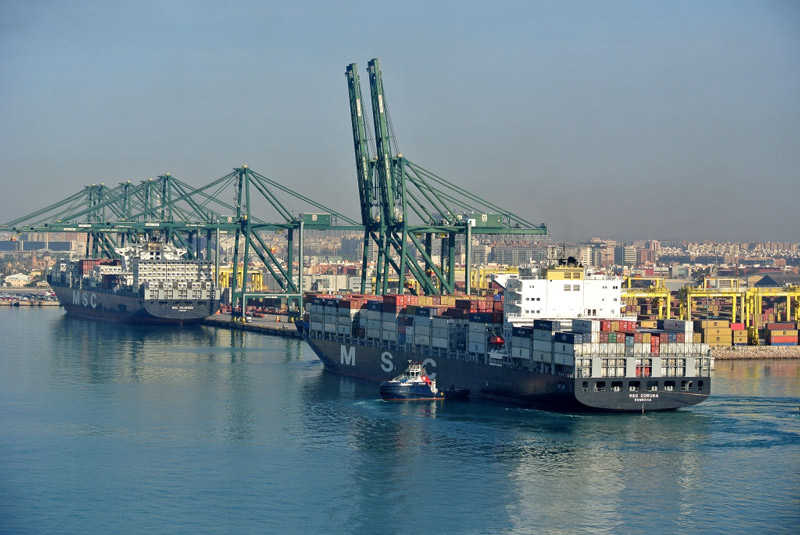 Per contra, les exportacions van experimentar una reculada del 0,86% fins a un total de 8.130.728 tones. Aquest descens es deu als resultats de països com Itàlia (-4,68%), el Marroc (-1,61%) i l’Aràbia Saudita (-17,44%), si bé l’exportació amb Xina va créixer un 3,53%. Per la seua banda, el trànsit global va descendir un 3,32% en aquest període.