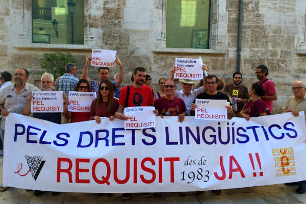 La campanya d’Escola Valenciana “Drets lingüístics. Requisit ja!”, encetada en el marc de les Trobades 2016, té un component informatiu fonamental per sensibilitzar la societat que “cada vegada que renuncia al valencià davant de les administracions, ja siga de forma oral o escrita, està sent tractada amb inferioritat, està sent discriminada i està sent marginada”, en paraules del president de l’entitat.
