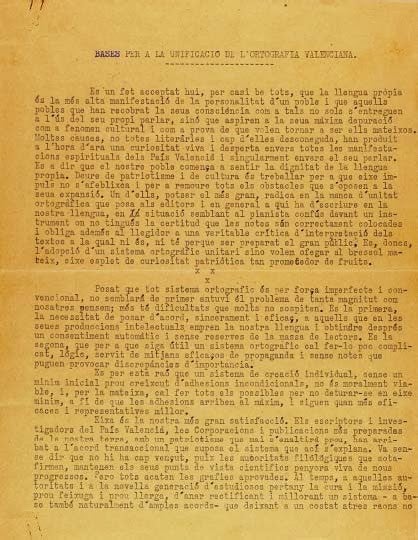 El 21 de desembre del 1932 va es van donar a conéixer les Normes de Castelló amb el títol de «Bases per a la unificació de l’ortografia valenciana».