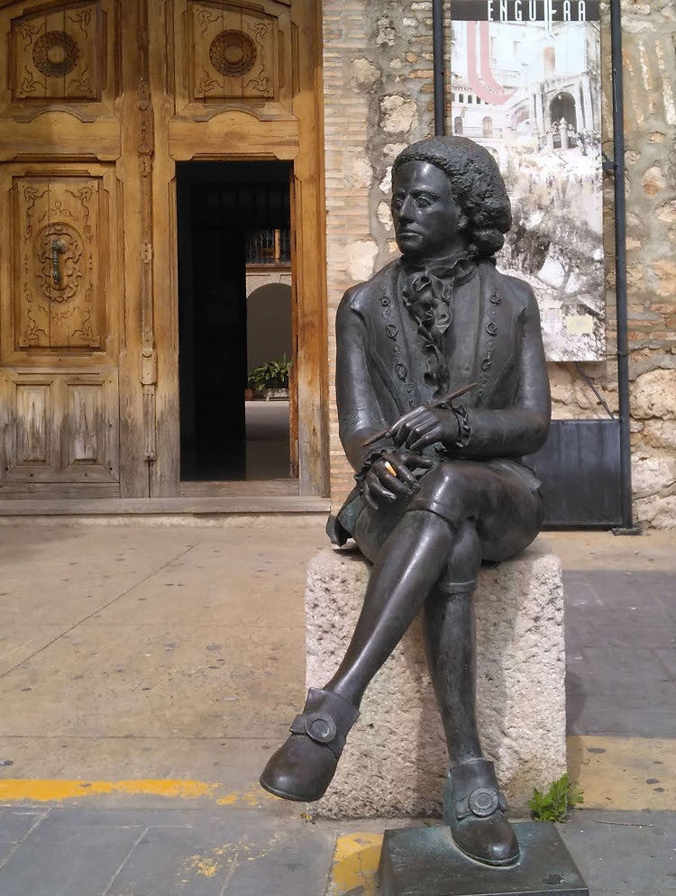 El 4 de maig de 1757 va nàixer a Énguera (la Canal de Navarrés) l’arquitecte i escultor Manuel Vicente Agustín Tolsà i Sarrión. Va estudiar en el taller de l’escultor José Puchol abans d’inscriure’s en l’Acadèmia de Sant Carles de València. El 1780, es va traslladar a Madrid, on va estudiar diverses disciplines artístiques, incloent-hi pintura. Encara que no hi ha molts registres, es pensa que va treballar diversos anys com a escultor a la cort.