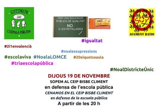 Ha canviat el govern, tenim un govern que vol ser respectuós amb l’educació pública i que ha manifestat la seua voluntat de prioritzar l’educació pública, ens agrada, molt. Encara així, les escoles suprimides tornem a sopar per fer-li memòria al nou govern sobre allò que reclamàvem fa uns mesos i recordar-li que: