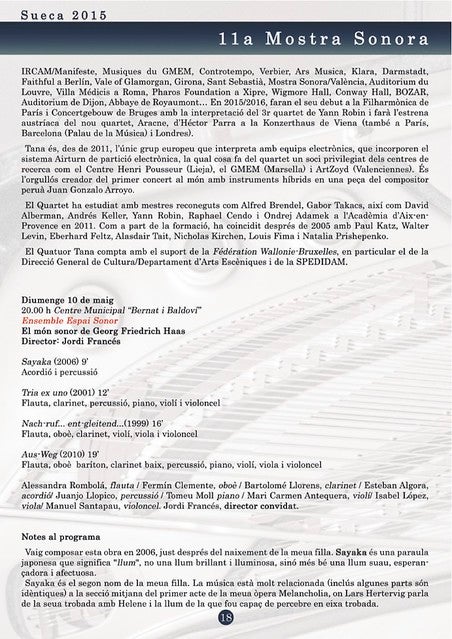 Obres d’ E. Alonso, V. García, G. Jiménez, G.F. Haas, H. Lachenmann, J. López-Montes i H. Vaggione