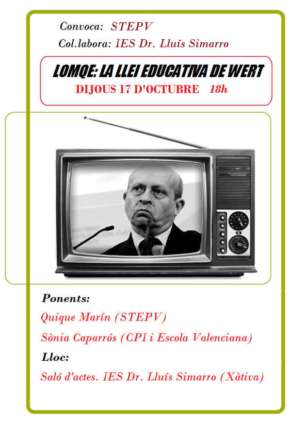 Hui, dijous 17 d’octubre, a les 18h al Saló d’Actes de l’IES Dr. Lluís Simarro de Xàtiva.