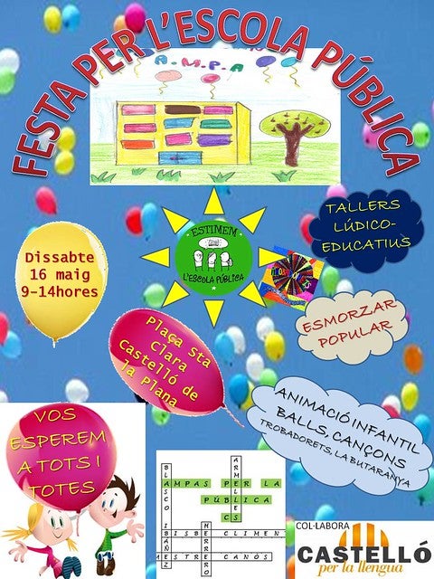 2a FESTA PER L’ESCOLA PÚBLICA – dissabte 16 de mig – plaça de Sta Clara, Castelló