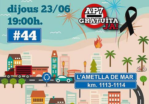 Us volem convidar a venir amb nosaltres al tall que fem forçosament desterrats a terres catalanes, sols a un pam del riu que uneix a totes dues autonomies. Aquí al País Valencià no ens deixen, no ens donen importància, ni a nosaltres ni al reguitzell de víctimes per les que clamem. Volem que aquesta siga la última. Reiterem que volem l’alliberament de l’AP-7 per a minvar la densitat de tràfic que suporta la N-340, motiu de tants i tants accidents.