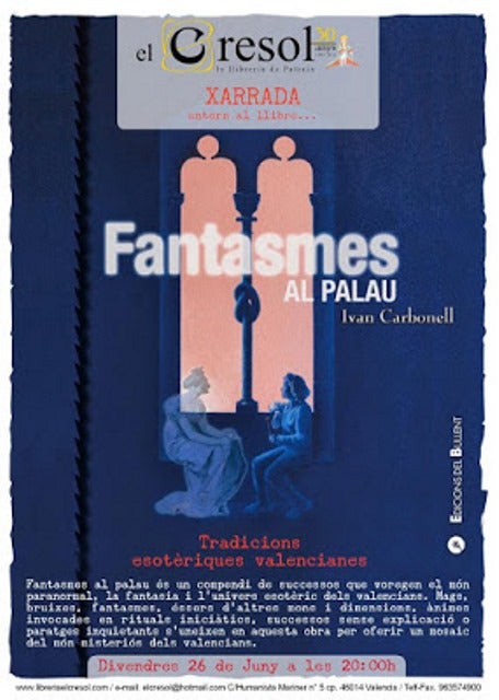 Ivan Carbonell hi anirà per parlar de les tradicions esotèriques valencianes, moltes de les quals explica de manera magnífica al llibre Fantasmes al palau. Fantasmes al palau és un compendi de successos que voregen el món paranormal, la fantasia i l’univers esotèric dels valencians.